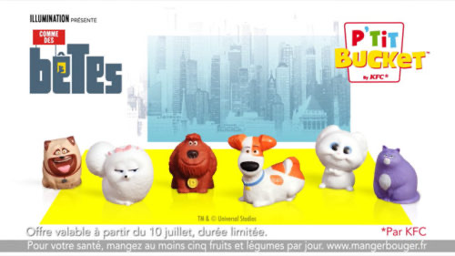 Le Colonnel Sanders tranforme son Manoir en toboggan géant pour dévoiler le nouveau menu enfant KFC. Le Menu P’tit Bucket™ : pour faire comme les grand chez KFC ! Et à l’occasion de la sortie du film « Comme des bêtes 2 », 6 figurines des héros du film sont à retrouver dans Le Menu P’tit Bucket™ de KFC.